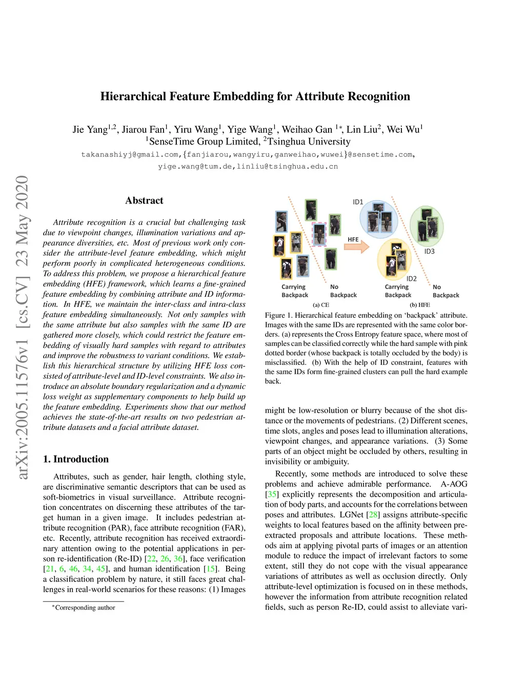 Attribute recognition is a crucial but challenging task due to viewpoint changes, illumination variations and appearance diversities, etc. Most of previous work only consider the attribute-level feature embedding, which might perform poorly in complicated heterogeneous conditions. To address this problem, we propose a hierarchical feature embedding (HFE) framework, which learns a fine-grained feature embedding by combining attribute and ID information. In HFE, we maintain the inter-class and intra-class feature embedding simultaneously. Not only samples with the same attribute but also samples with the same ID are gathered more closely, which could restrict the feature embedding of visually hard samples with regard to attributes and improve the robustness to variant conditions. We establish this hierarchical structure by utilizing HFE loss consisted of attribute-level and ID-level constraints. We also introduce an absolute boundary regularization and a dynamic loss weight as supplementary components to help build up the feature embedding. Experiments show that our method achieves the state-of-the-art results on two pedestrian attribute datasets and a facial attribute dataset.