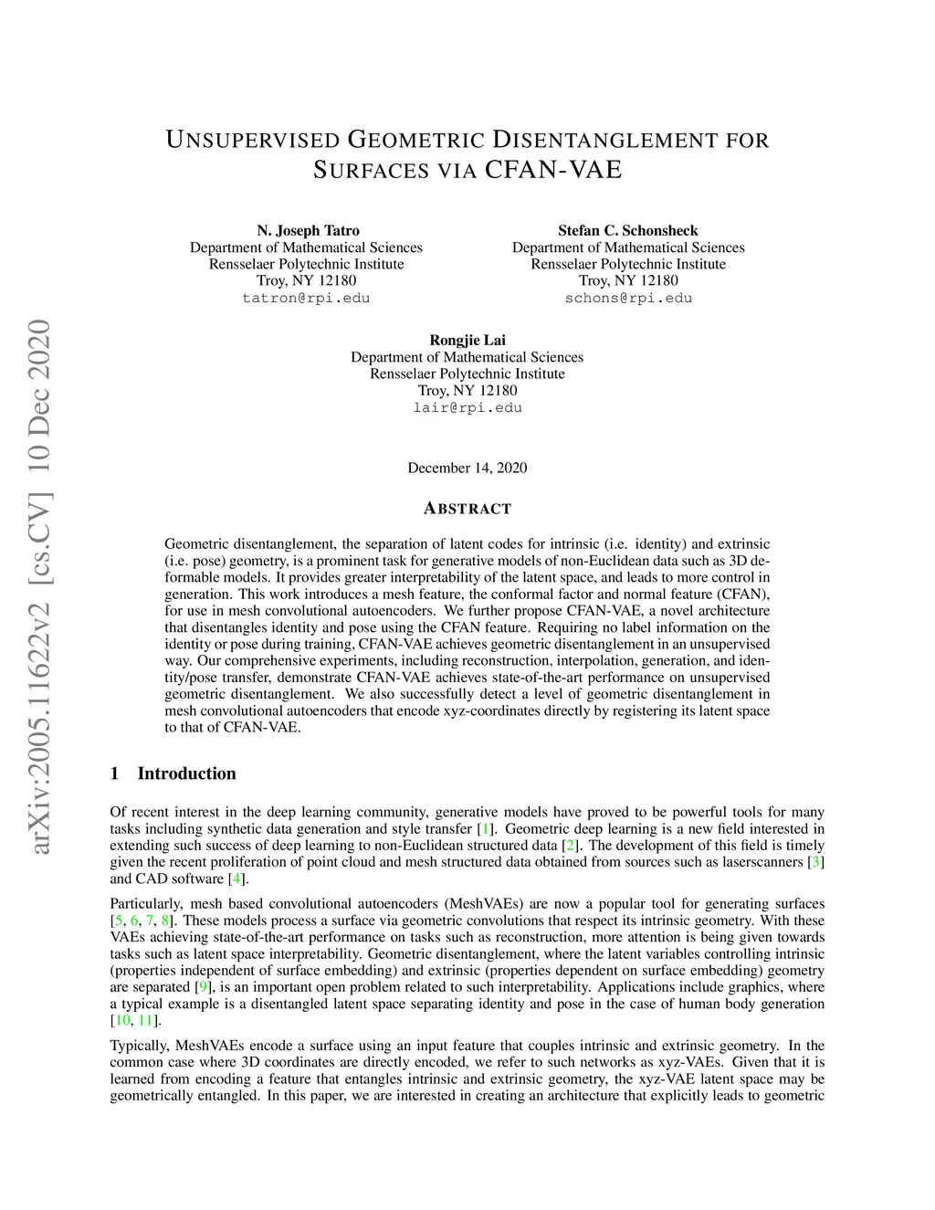 Unsupervised Geometric Disentanglement for Surfaces via CFAN-VAE