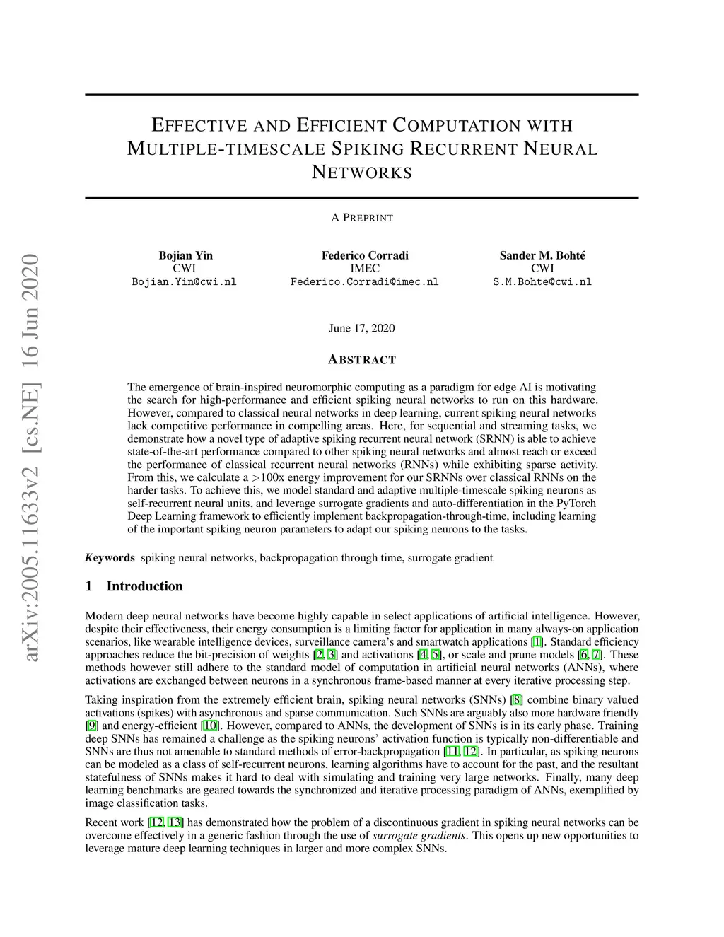 The emergence of brain-inspired neuromorphic computing as a paradigm for edge AI is motivating the search for high-performance and efficient spiking neural networks to run on this hardware. However, compared to classical neural networks in deep learning, current spiking neural networks lack competitive performance in compelling areas. Here, for sequential and streaming tasks, we demonstrate how a novel type of adaptive spiking recurrent neural network (SRNN) is able to achieve state-of-the-art performance compared to other spiking neural networks and almost reach or exceed the performance of classical recurrent neural networks (RNNs) while exhibiting sparse activity. From this, we calculate a 100x energy improvement for our SRNNs over classical RNNs on the harder tasks. To achieve this, we model standard and adaptive multiple-timescale spiking neurons as self-recurrent neural units, and leverage surrogate gradients and auto-differentiation in the PyTorch Deep Learning framework to efficiently implement backpropagation-through-time, including learning of the important spiking neuron parameters to adapt our spiking neurons to the tasks.