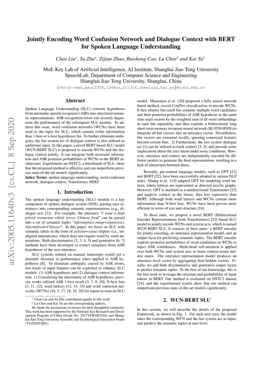 Jointly Encoding Word Confusion Network and Dialogue Context with BERT
