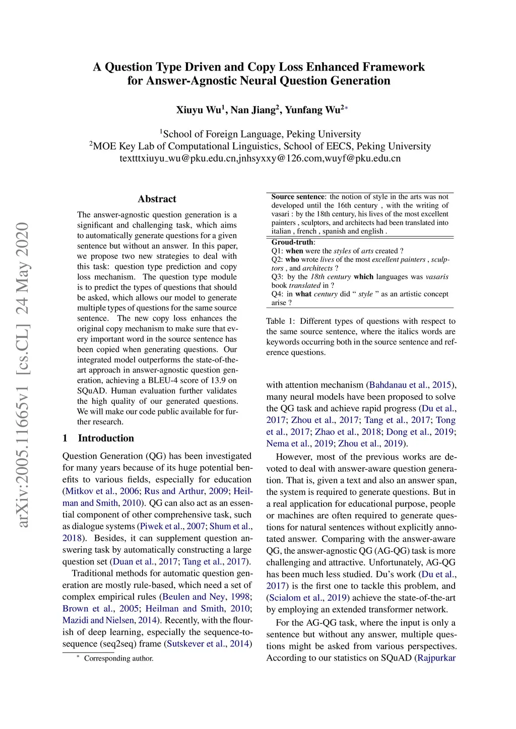 A Question Type Driven and Copy Loss Enhanced Frameworkfor