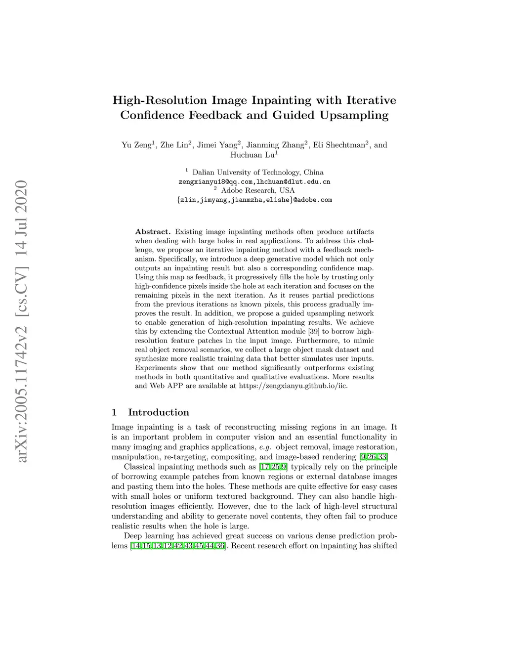 High-Resolution Image Inpainting with Iterative Confidence Feedback and