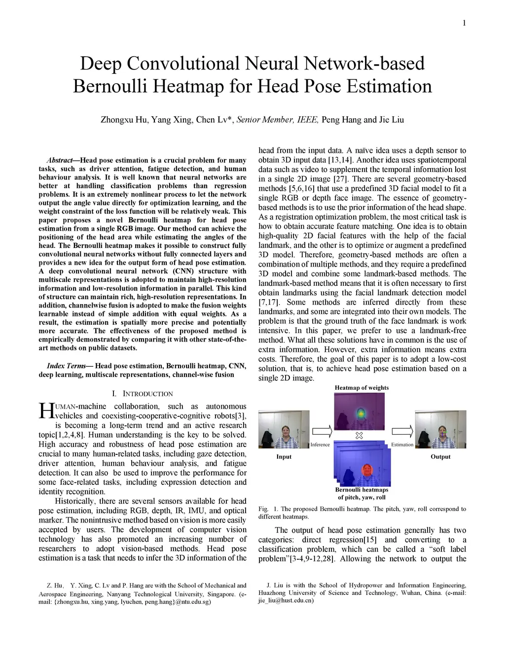 Deep Convolutional Neural Network-based Bernoulli Heatmap for Head Pose