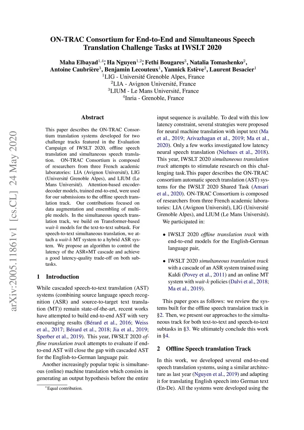 ON-TRAC Consortium for End-to-End and Simultaneous Speech Translation