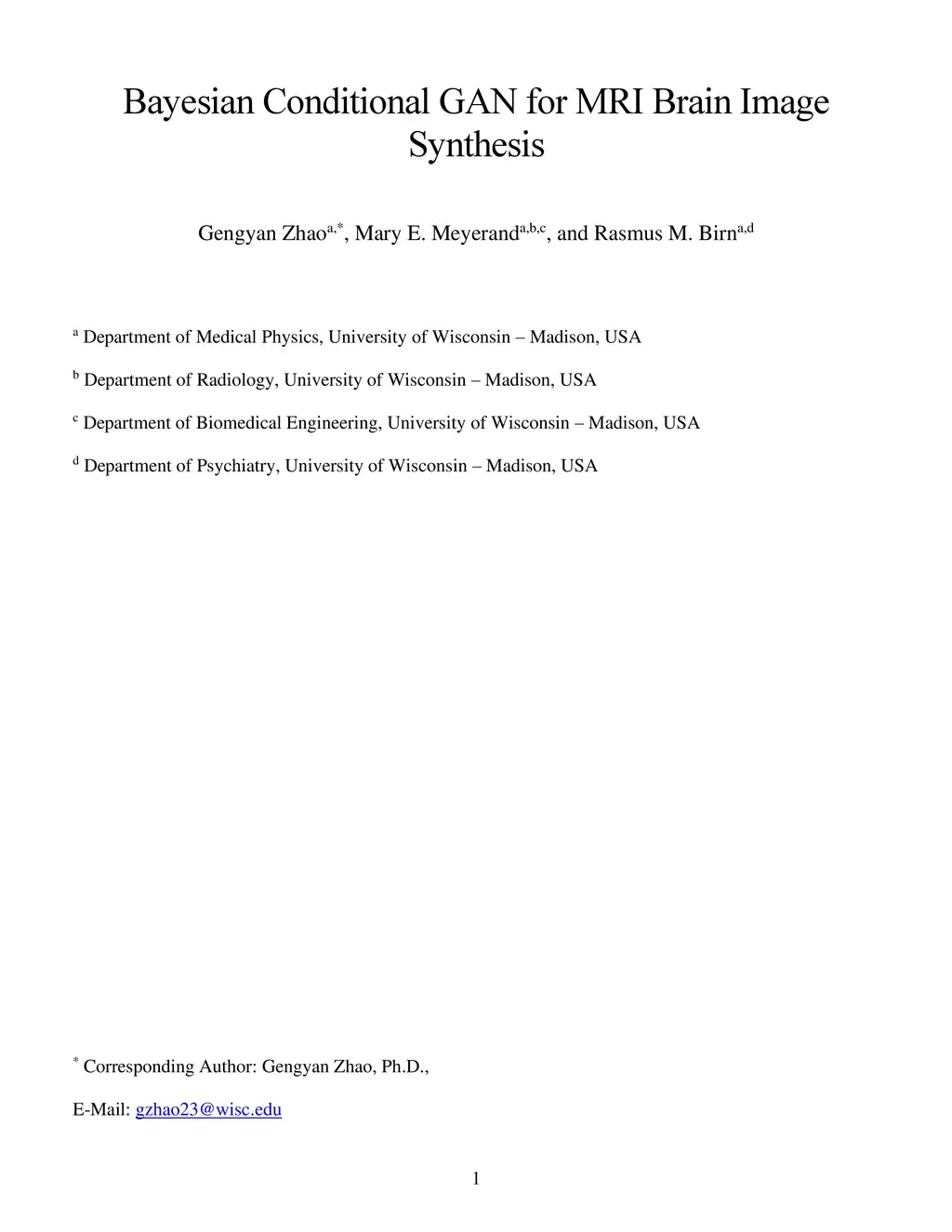 Bayesian Conditional GAN for MRI Brain Image Synthesis