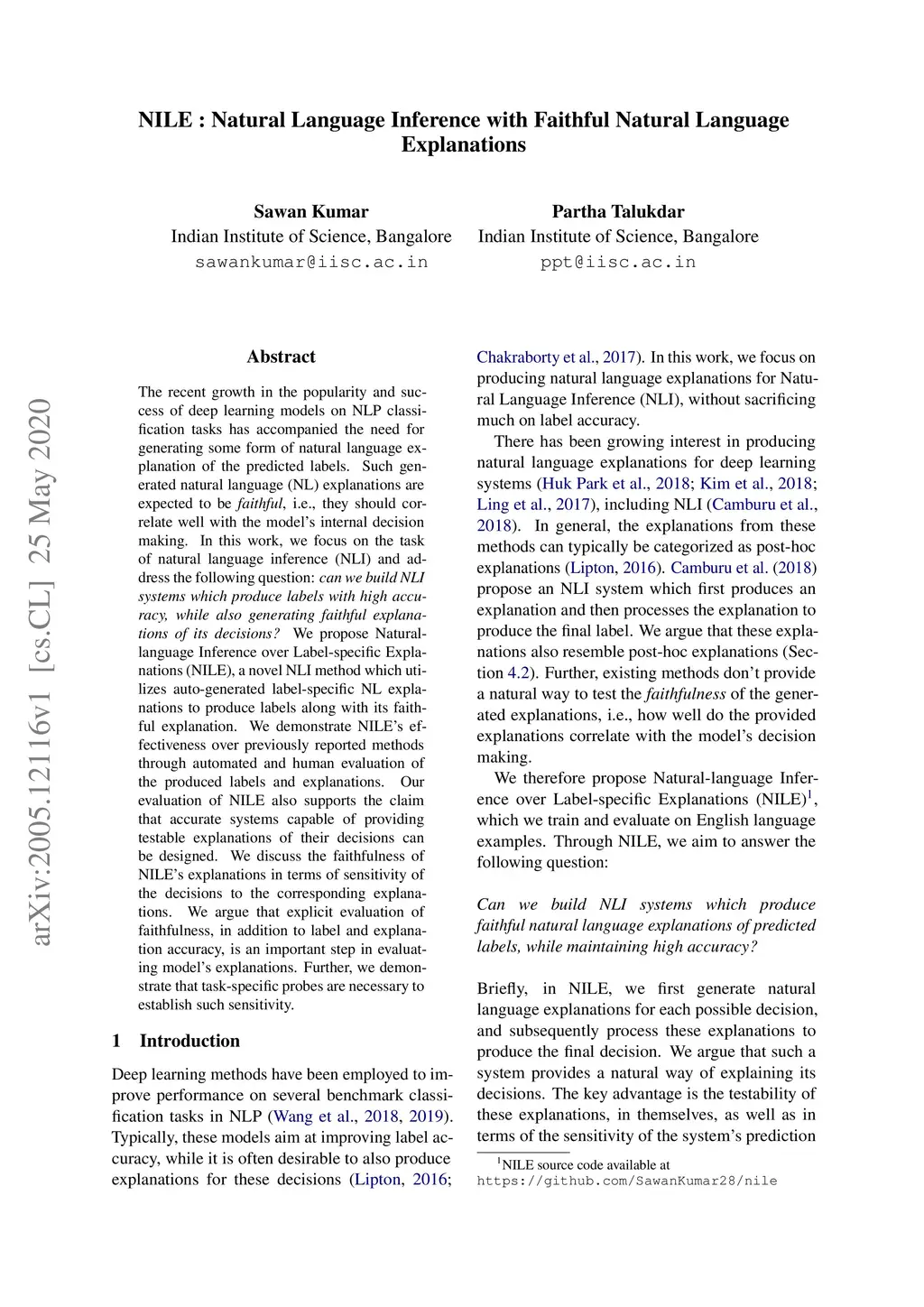 NILE : Natural Language Inference with Faithful Natural Language