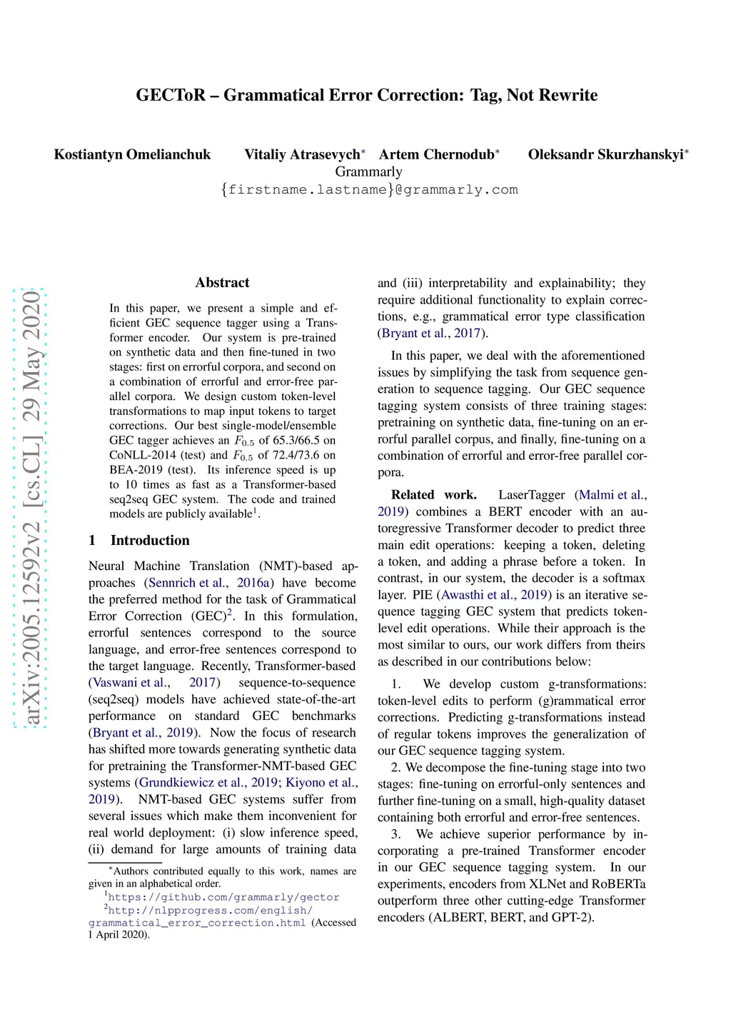 GECToR -- Grammatical Error Correction: Tag, Not Rewrite