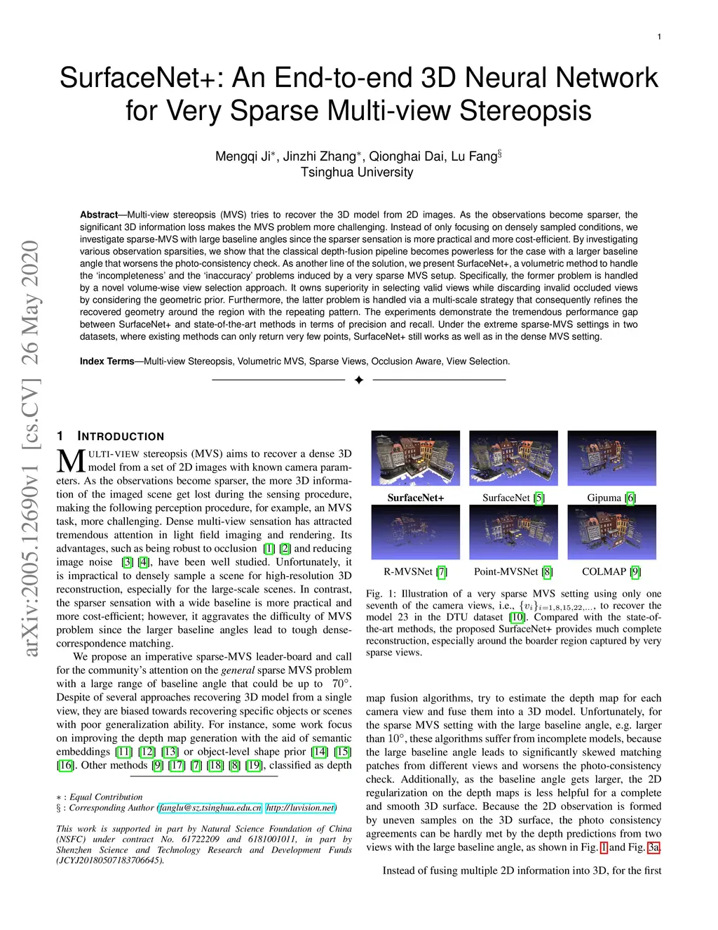 SurfaceNet+: An End-to-end 3D Neural Network for Very Sparse Multi-view