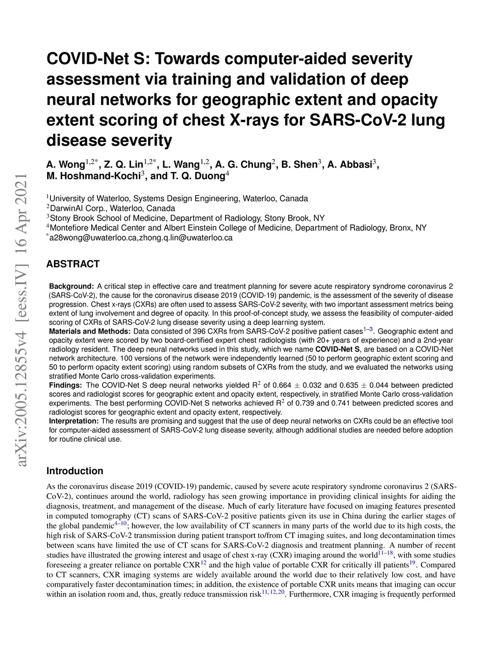 COVID-Net S: Towards computer-aided severity assessment via training and