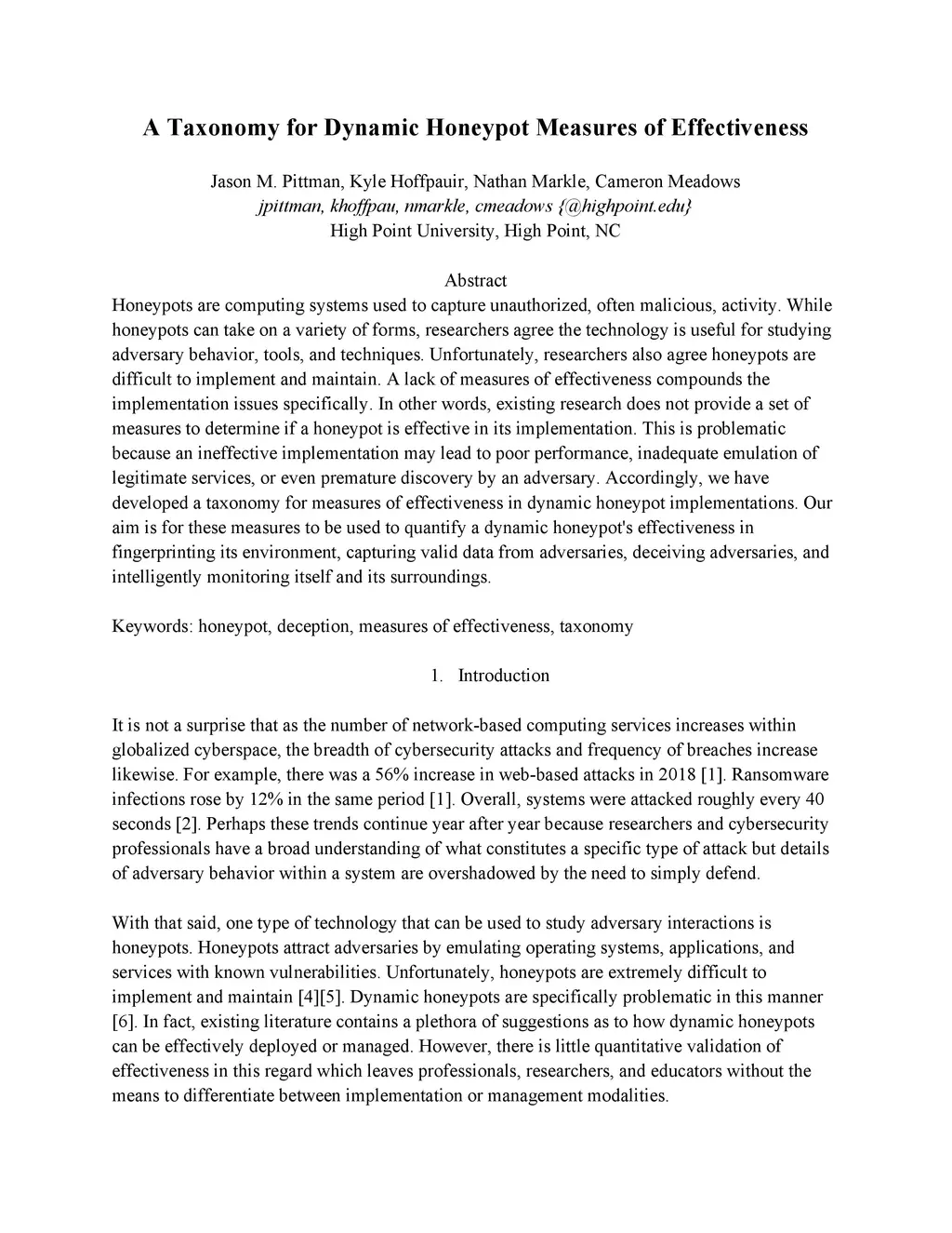 A Taxonomy for Dynamic Honeypot Measures of Effectiveness
