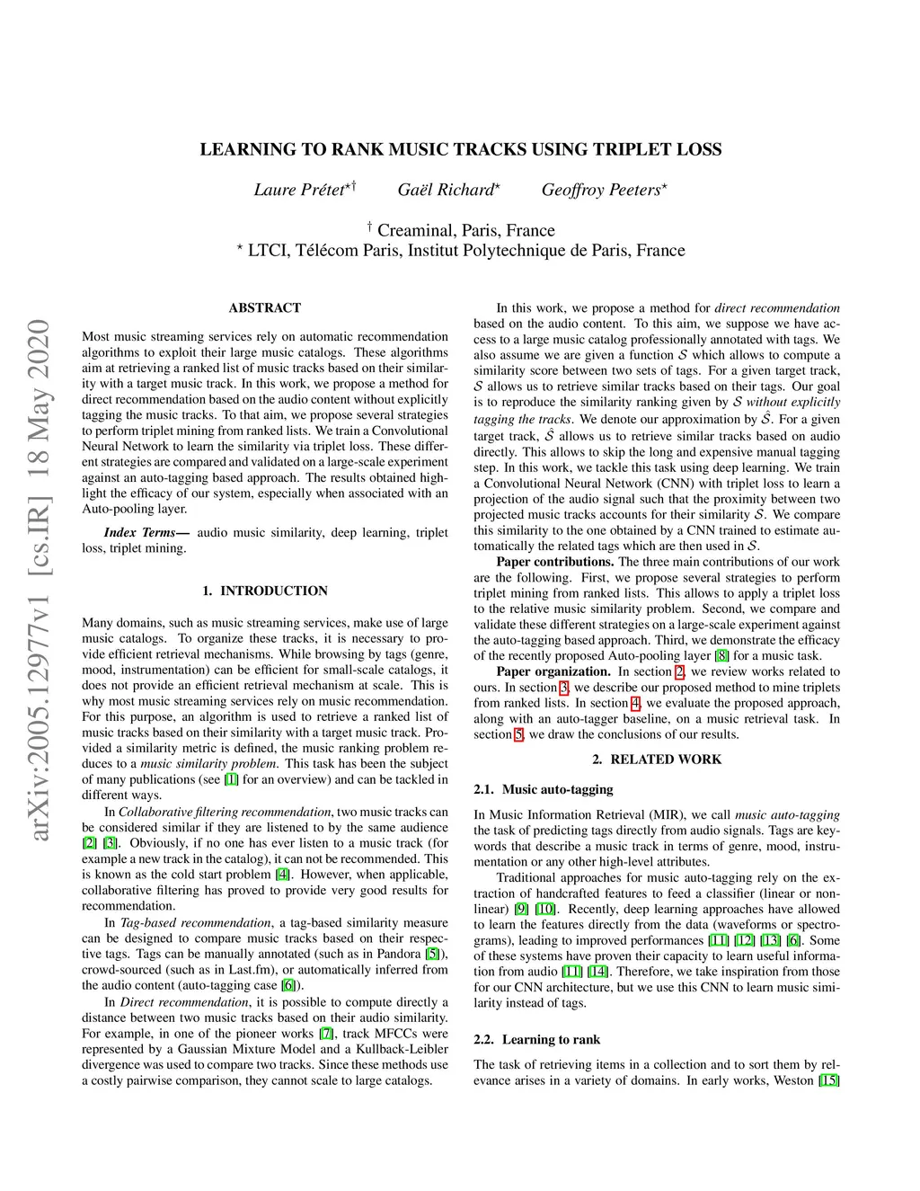 Most music streaming services rely on automatic recommendation algorithms to exploit their large music catalogs. These algorithms aim at retrieving a ranked list of music tracks based on their similarity with a target music track. In this work, we propose a method for direct recommendation based on the audio content without explicitly tagging the music tracks. To that aim, we propose several strategies to perform triplet mining from ranked lists. We train a Convolutional Neural Network to learn the similarity via triplet loss. These different strategies are compared and validated on a large-scale experiment against an auto-tagging based approach. The results obtained highlight the efficiency of our system, especially when associated with an Auto-pooling layer.