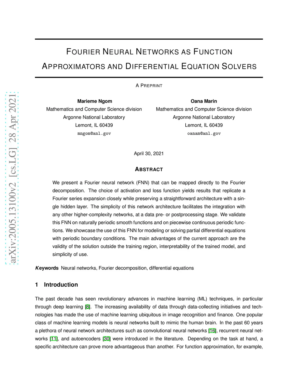 Fourier Neural Networks as Function Approximators and Differential