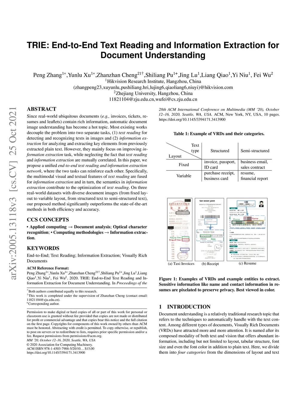 TRIE: End-to-End Text Reading and Information Extraction for Document