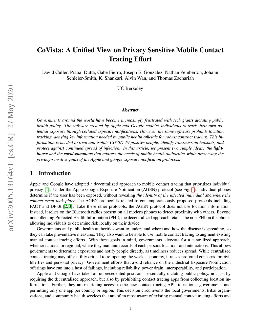 CoVista: A Unified View on Privacy Sensitive Mobile Contact Tracing