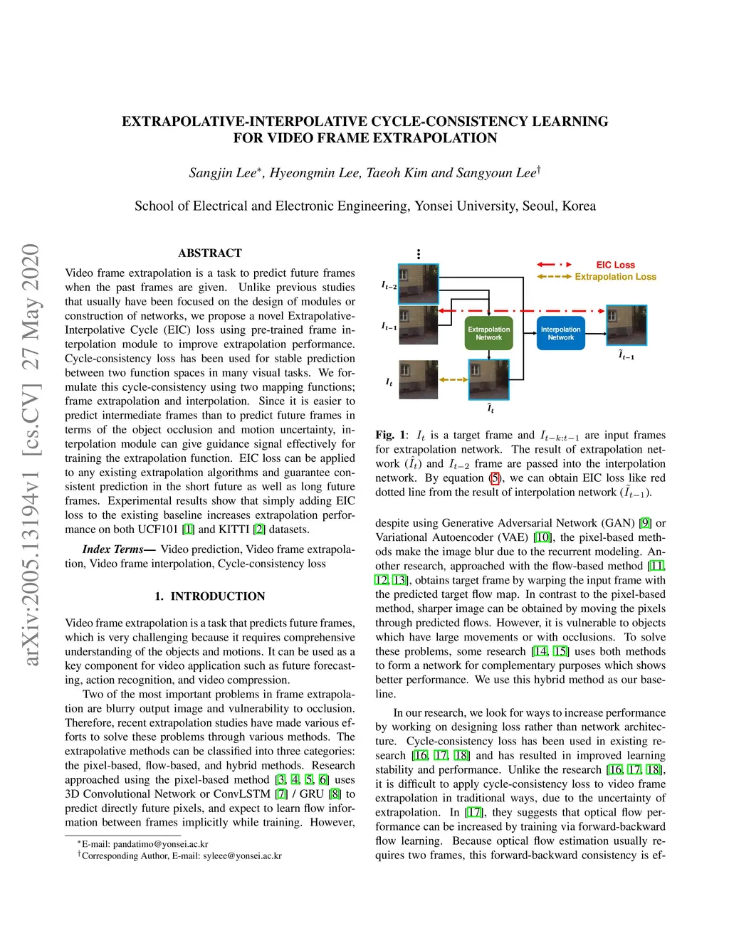 Extrapolative-Interpolative Cycle-Consistency Learning for Video Frame