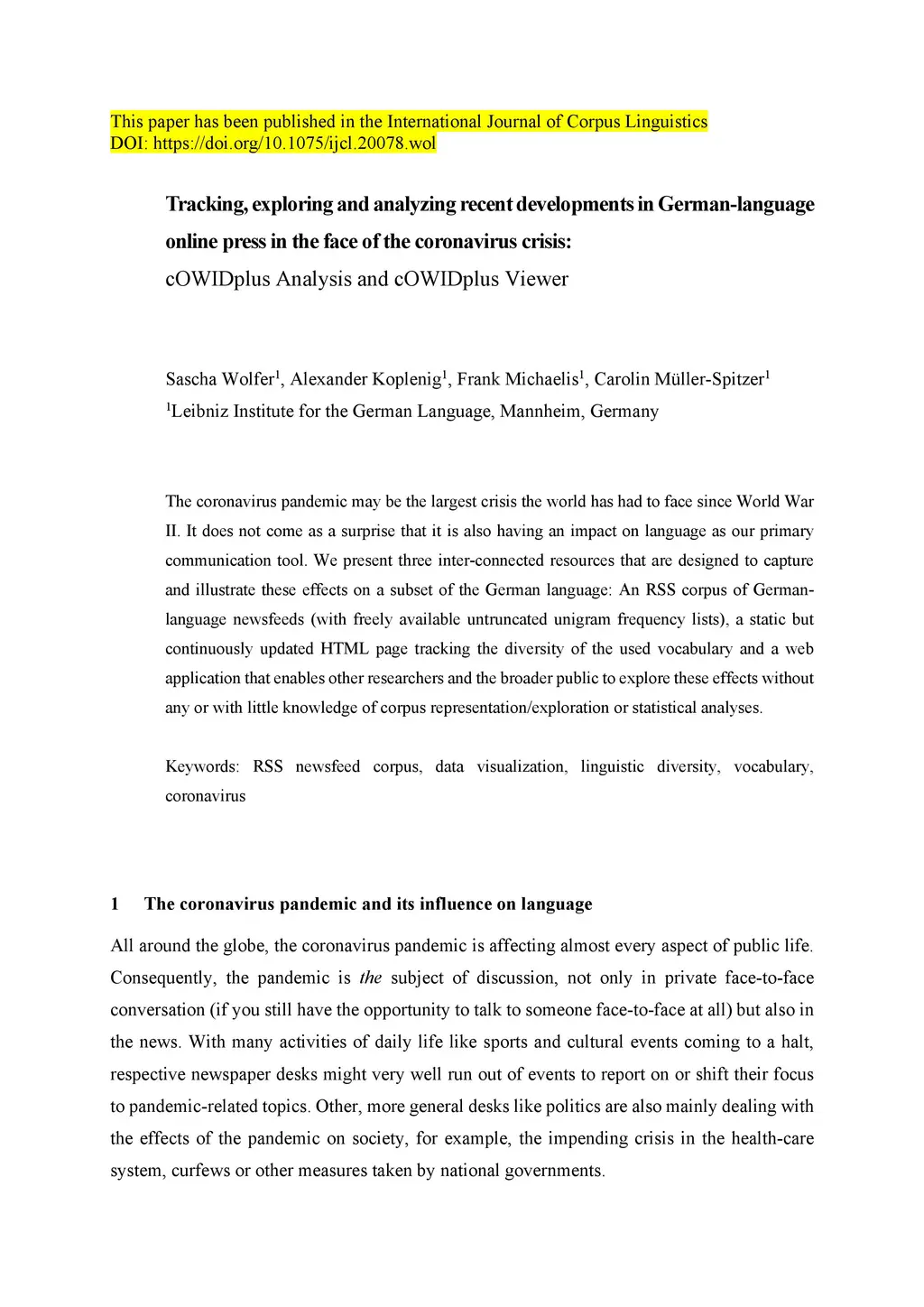 online press in the face of the coronavirus crisis: cOWIDplus Analysis and