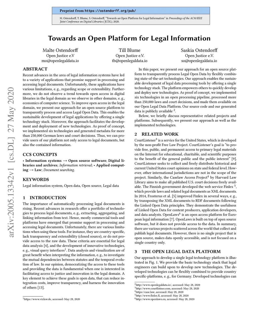 Towards an Open Platform for Legal Information