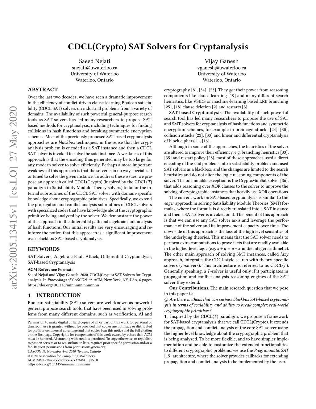 CDCL(Crypto) SAT Solvers for Cryptanalysis