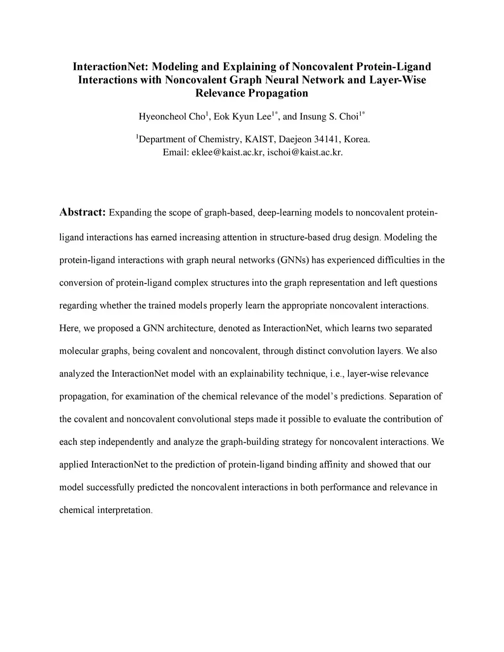 InteractionNet: Modeling and Explaining of Noncovalent Protein-Ligand