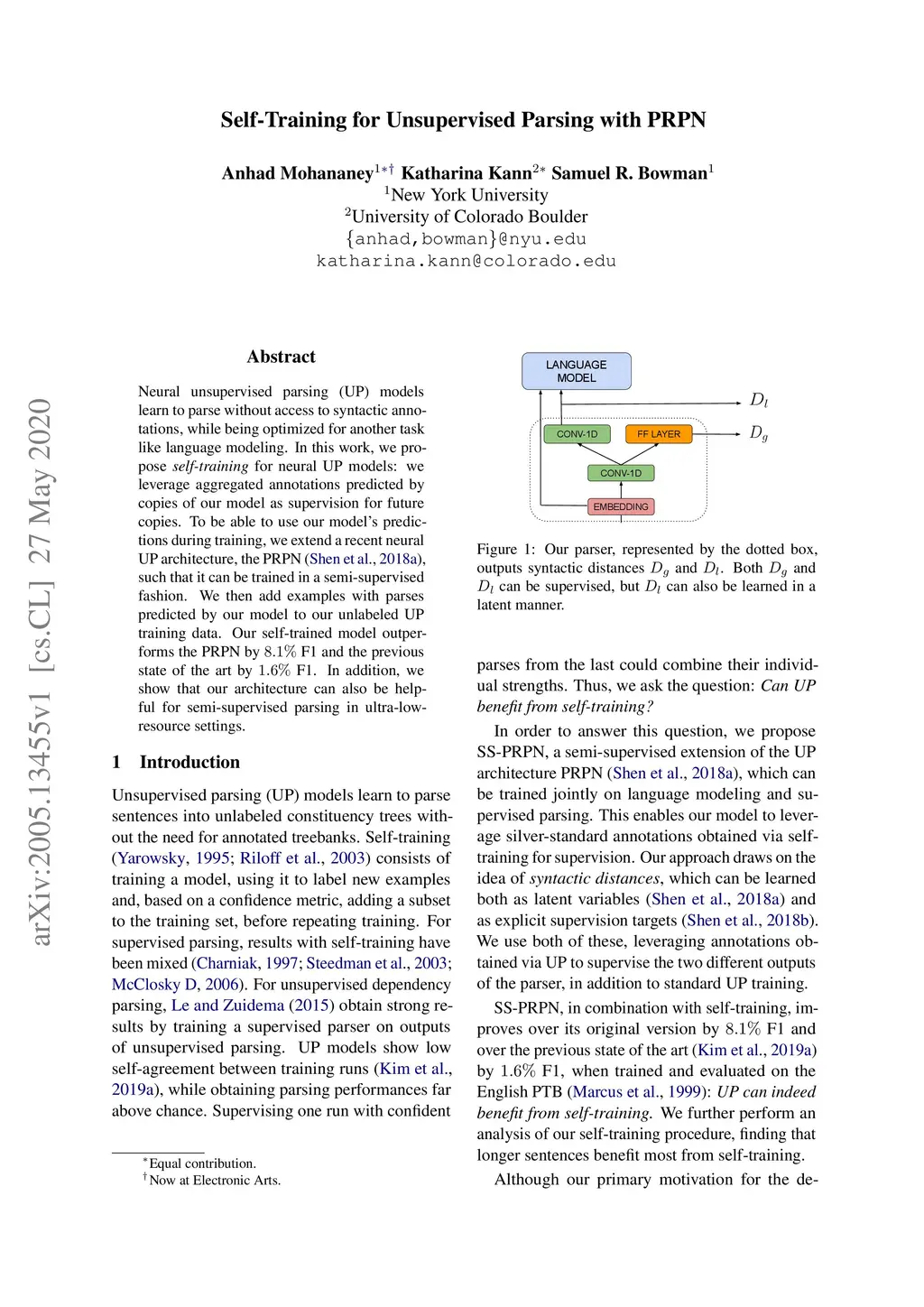 Self-Training for Unsupervised Parsing with PRPN