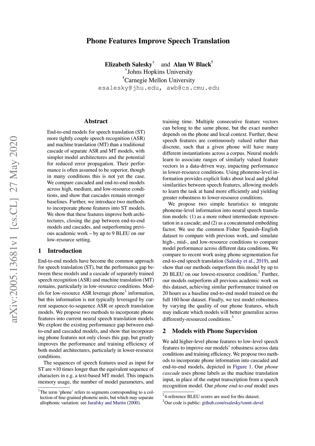 Phone Features Improve Speech Translation