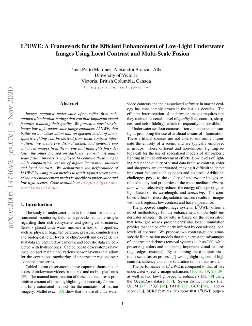 Underwater Images Using Local Contrast and Multi-Scale Fusion