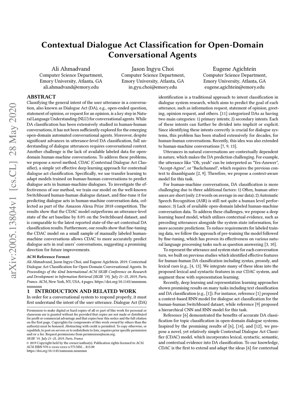 Contextual Dialogue Act Classification for Open-Domain Conversational