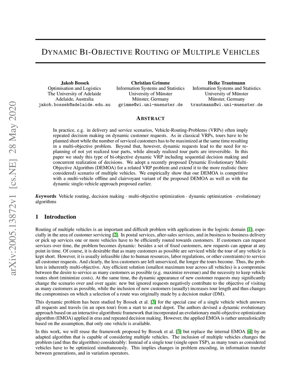 Dynamic Bi-Objective Routing of Multiple Vehicles