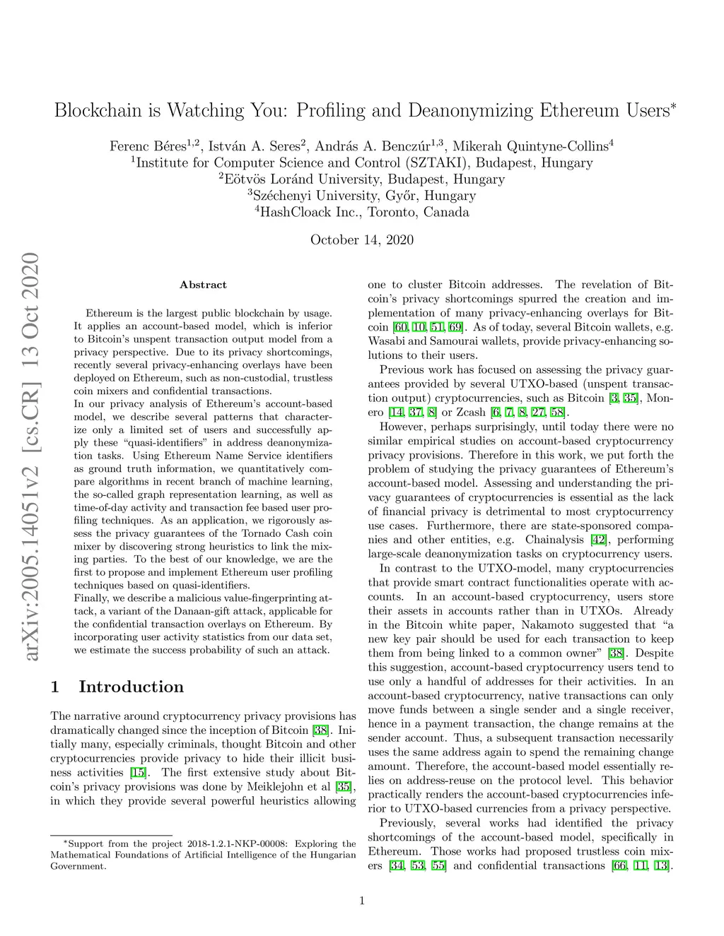 Blockchain is Watching You: Profiling and Deanonymizing Ethereum Users