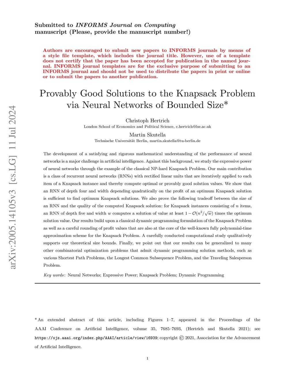 Provably Good Solutions to the Knapsack Problem via Neural Networks of
