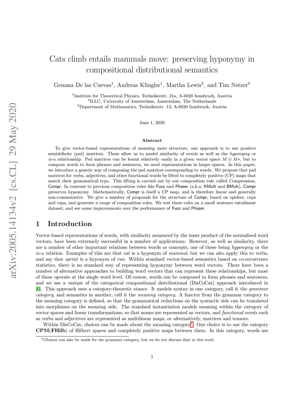 Cats climb entails mammals move: preserving hyponymy in compositional