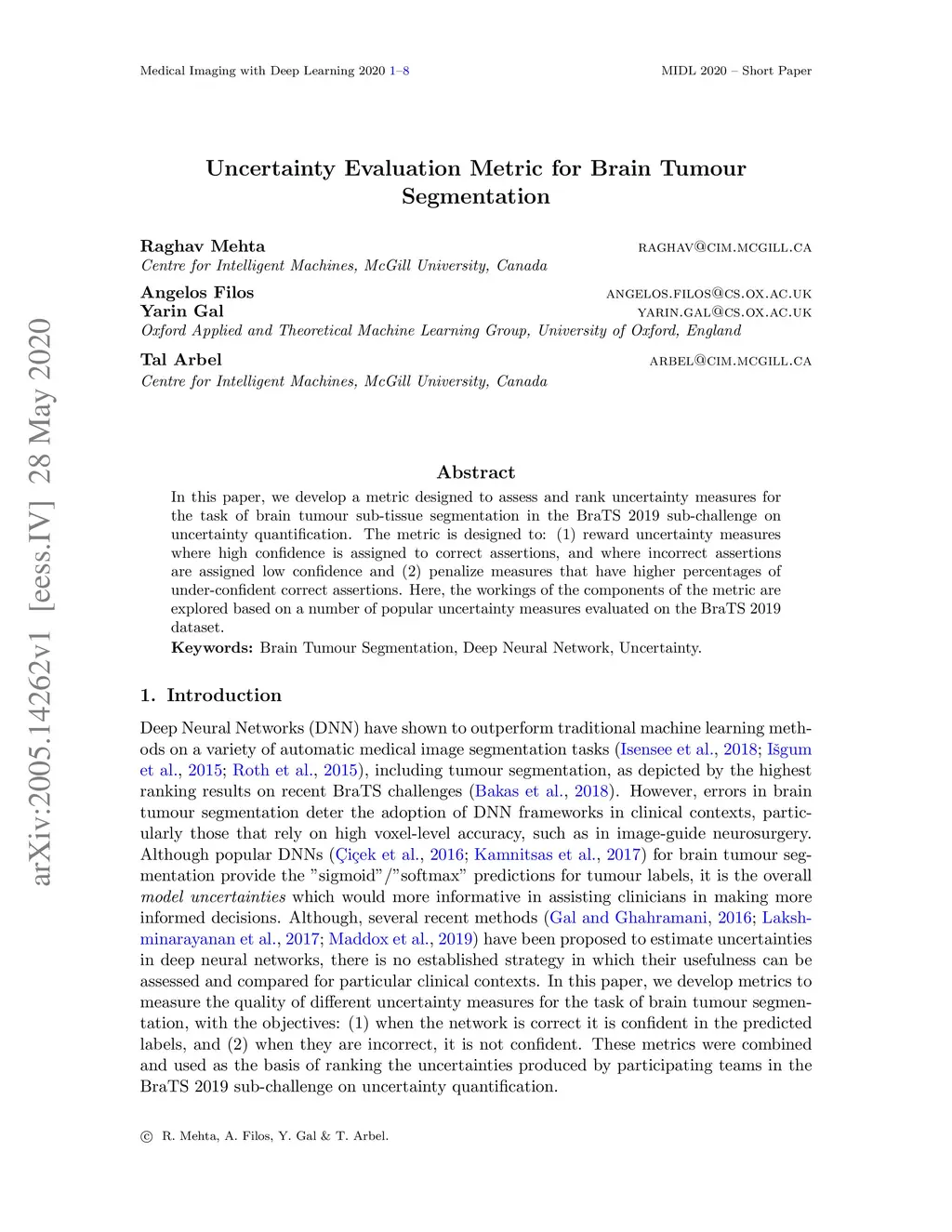 Uncertainty Evaluation Metric for Brain Tumour Segmentation