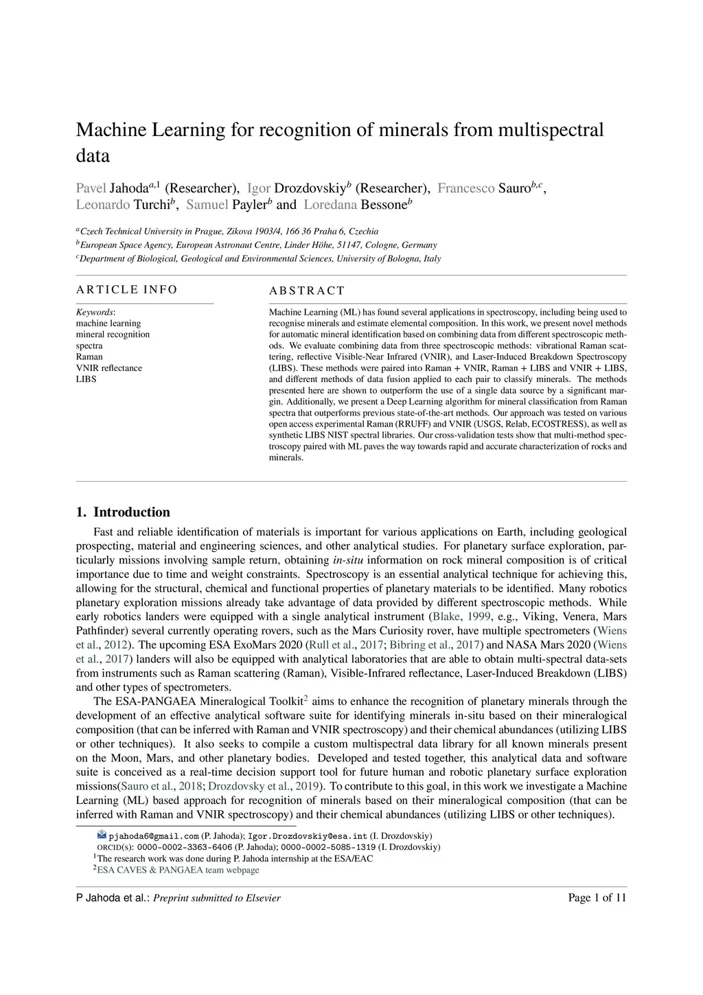 Machine Learning for recognition of minerals from multispectral data