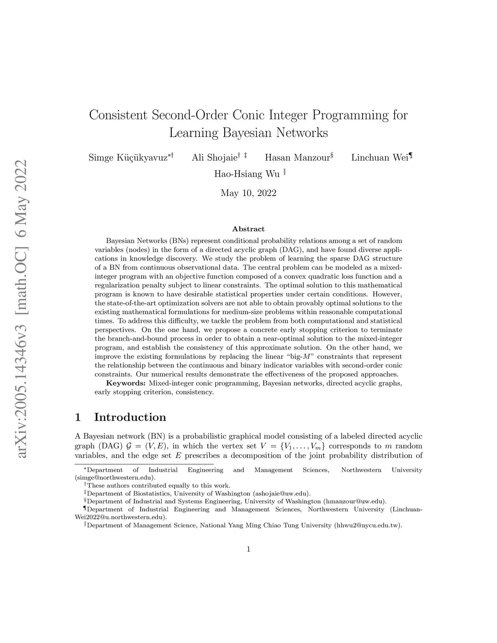 Consistent Second-Order Conic Integer Programming for Learning Bayesian