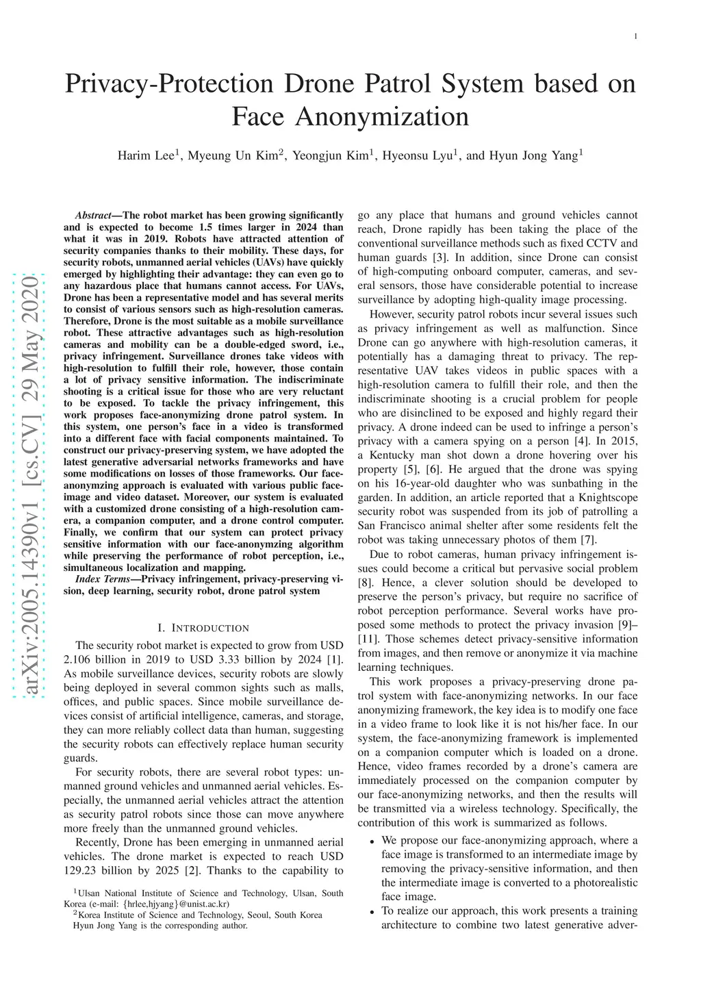 Privacy-Protection Drone Patrol System based on Face Anonymization