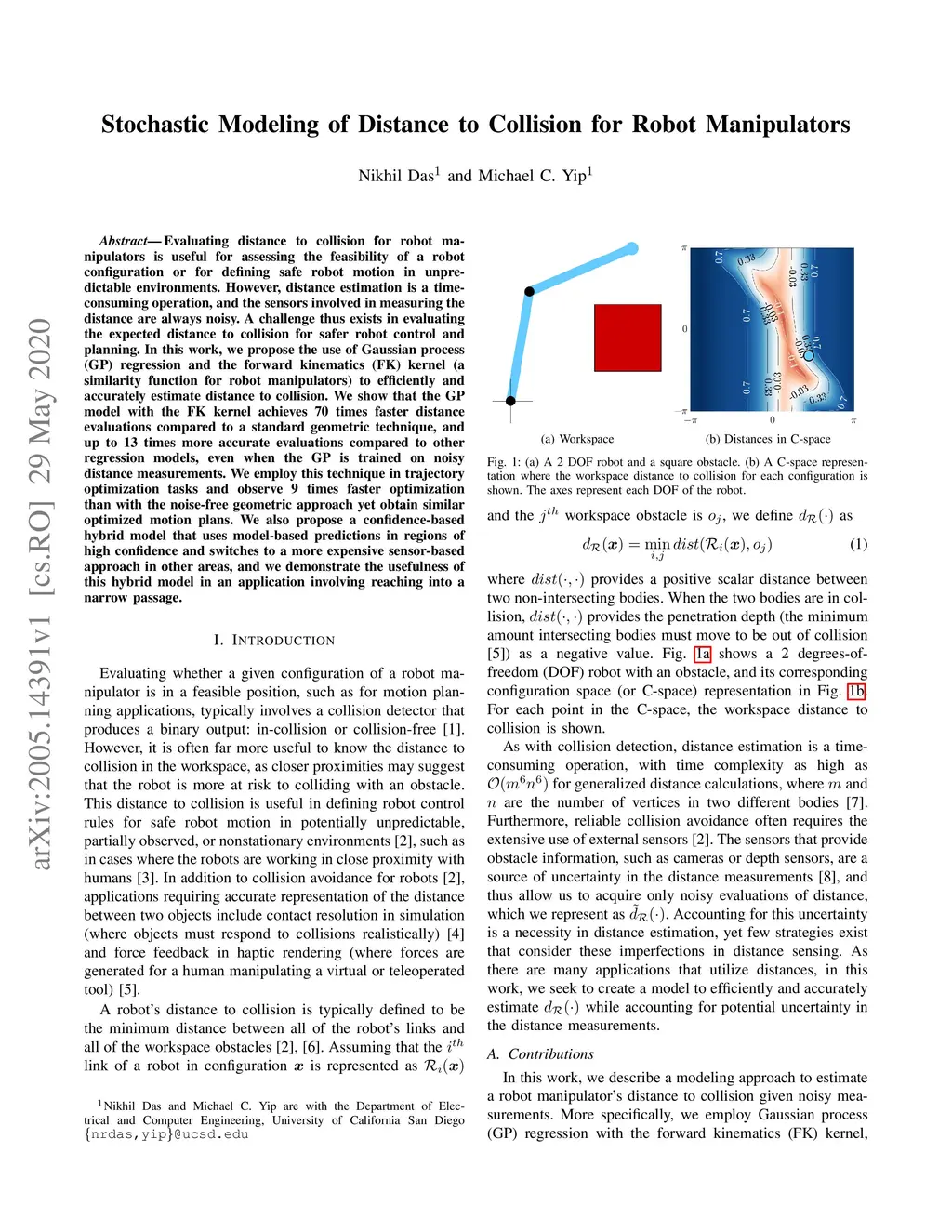 Stochastic Modeling of Distance to Collision for Robot Manipulators