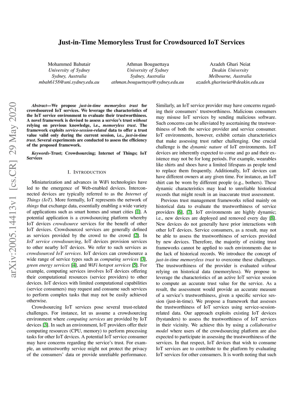 Just-in-Time Memoryless Trust for Crowdsourced IoT Services
