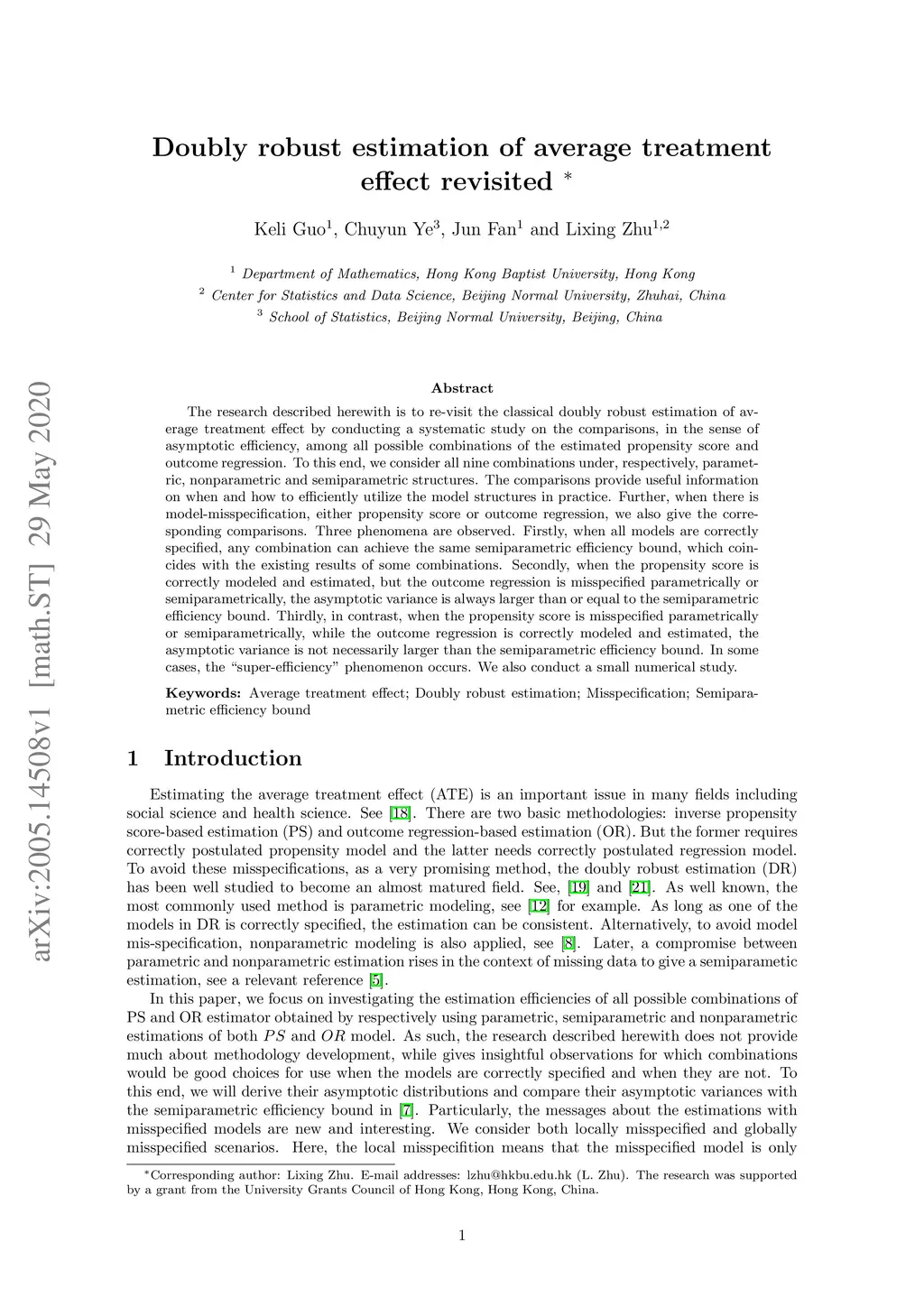 The research described herewith is to re-visit the classical doubly robust estimation of average treatment effect by conducting a systematic study on the comparisons, in the sense of asymptotic efficiency, among all possible combinations of the estimated propensity score and outcome regression. To this end, we consider all nine combinations under, respectively, parametric, nonparametric and semiparametric structures. The comparisons provide useful information on when and how to efficiently utilize the model structures in practice. Further, when there is model-misspecification, either propensity score or outcome regression, we also give the corresponding comparisons. Three phenomena are observed. Firstly, when all models are correctly specified, any combination can achieve the same semiparametric efficiency bound, which coincides with the existing results of some combinations. Secondly, when the propensity score is correctly modeled and estimated, but the outcome regression is misspecified parametrically or semiparametrically, the asymptotic variance is always larger than or equal to the semiparametric efficiency bound. Thirdly, in contrast, when the propensity score is misspecified parametrically or semiparametrically, while the outcome regression is correctly modeled and estimated, the asymptotic variance is not necessarily larger than the semiparametric efficiency bound. In some cases, the "super-efficiency" phenomenon occurs. We also conduct a small numerical study.