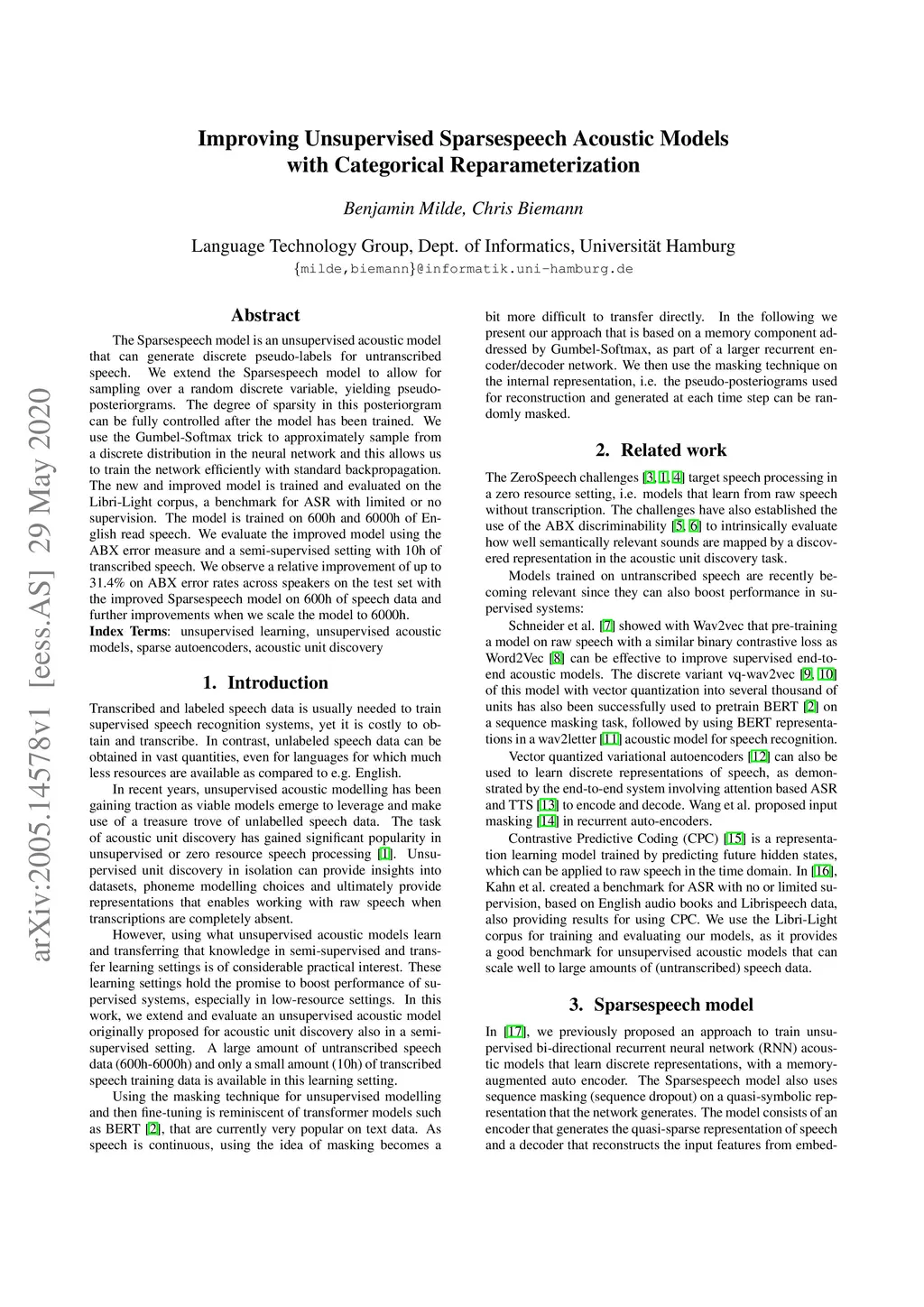Improving Unsupervised Sparsespeech Acoustic Models with Categorical