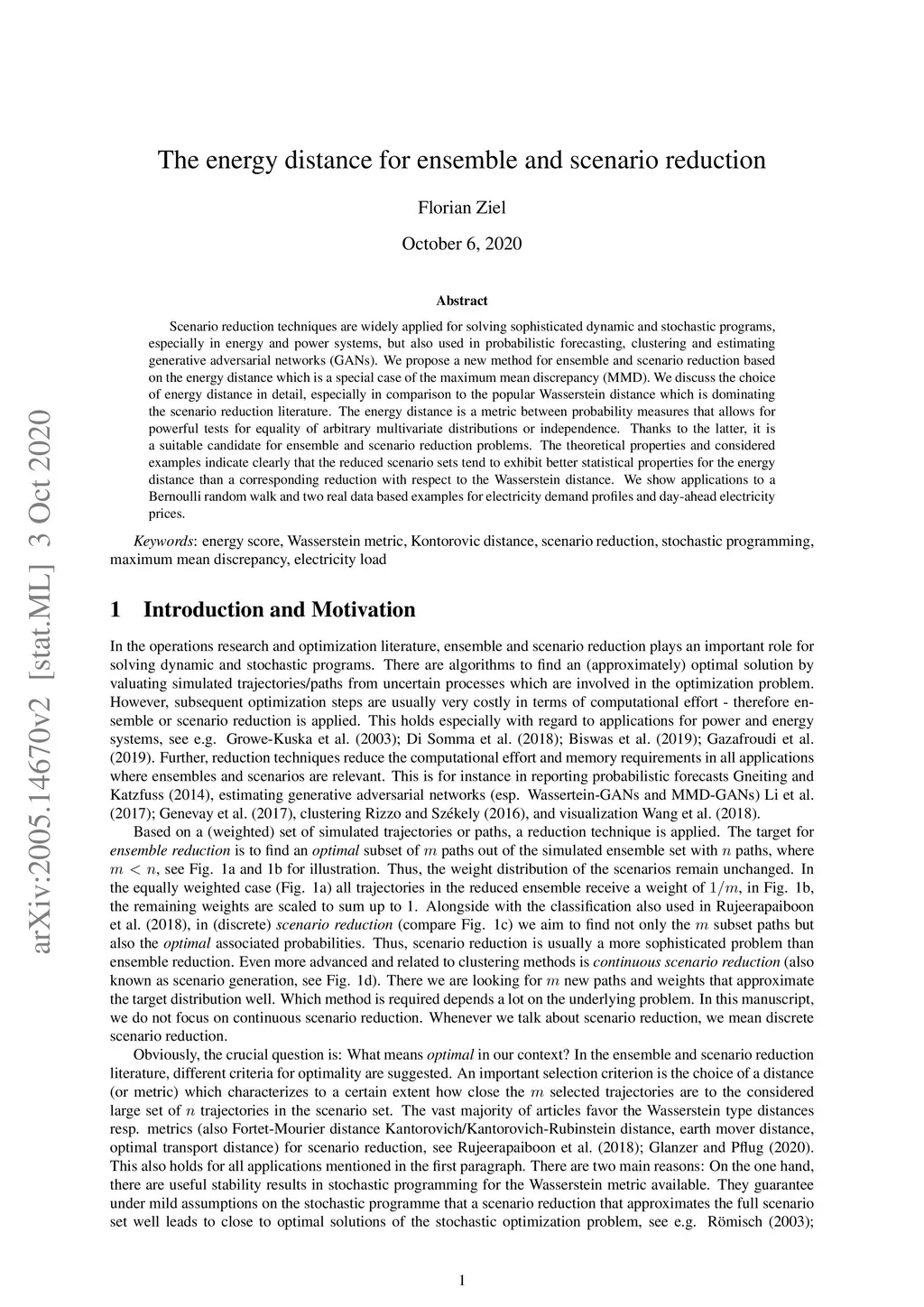 The energy distance for ensemble and scenario reduction