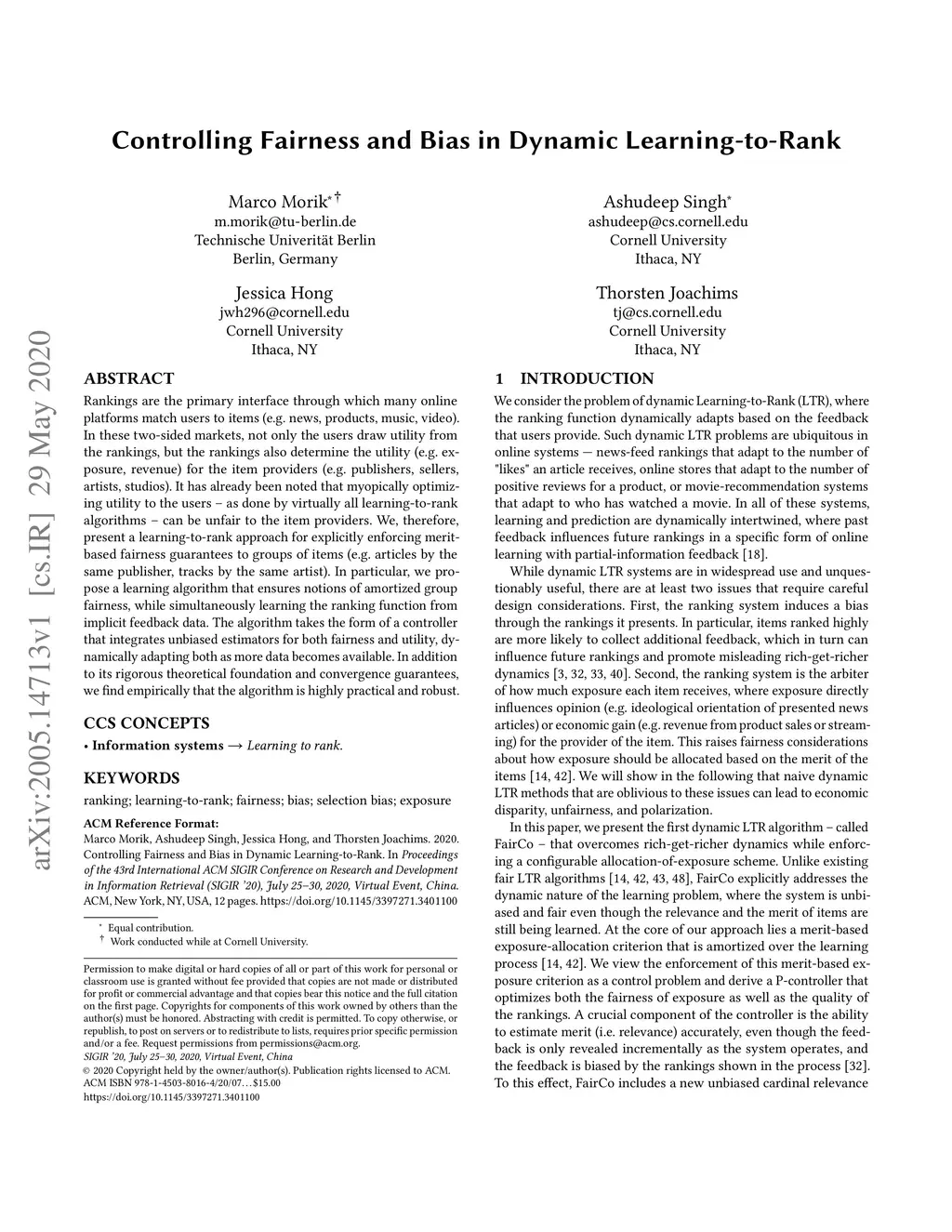 Controlling Fairness and Bias in Dynamic Learning-to-Rank