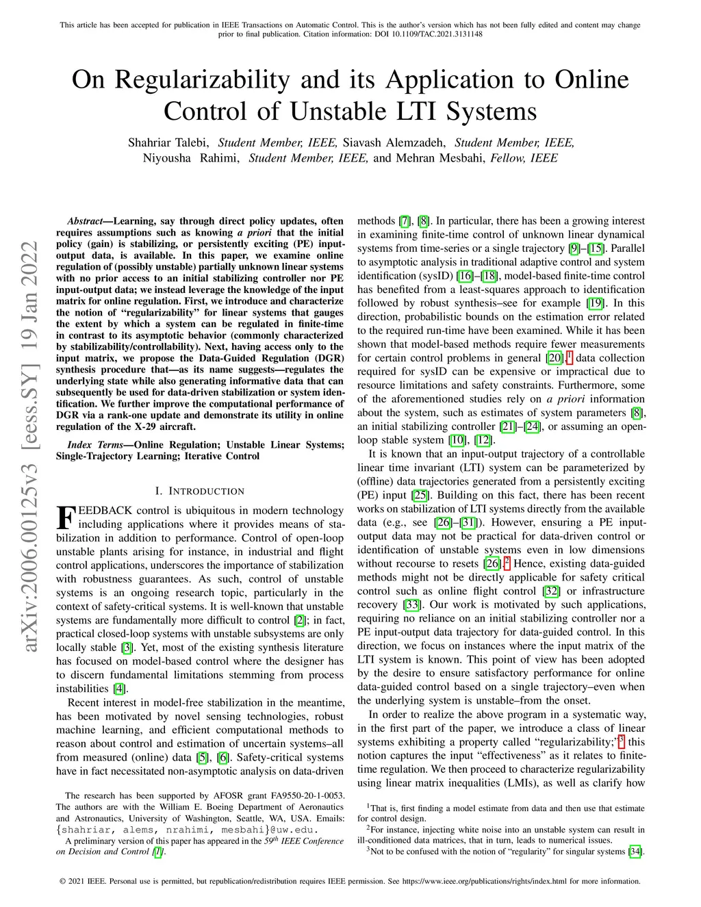 Learning, say through direct policy updates, often requires assumptions such as knowing a priori that the initial policy (gain) is stabilizing, or persistently exciting (PE) input-output data, is available. In this paper, we examine online regulation of (possibly unstable) partially unknown linear systems with no prior access to an initial stabilizing controller nor PE input-output data; we instead leverage the knowledge of the input matrix for online regulation. First, we introduce and characterize the notion of "regularizability" for linear systems that gauges the extent by which a system can be regulated in finite-time in contrast to its asymptotic behavior (commonly characterized by stabilizability/controllability). Next, having access only to the input matrix, we propose the Data-Guided Regulation (DGR) synthesis procedure that -- as its name suggests -- regulates the underlying state while also generating informative data that can subsequently be used for data-driven stabilization or system identification. We further improve the computational performance of DGR via a rank-one update and demonstrate its utility in online regulation of the X-29 aircraft.