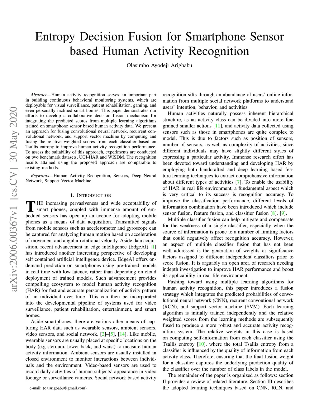Entropy Decision Fusion for Smartphone Sensor based Human Activity