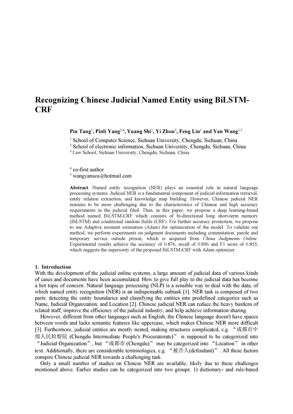 Recognizing Chinese Judicial Named Entity using BiLSTM-CRF