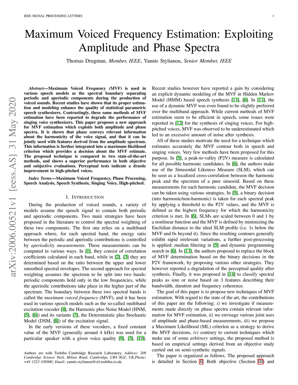 Maximum Voiced Frequency Estimation: Exploiting Amplitude and Phase