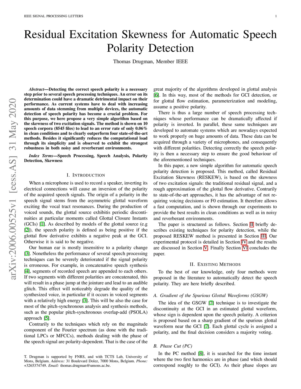 Residual Excitation Skewness for Automatic Speech Polarity Detection