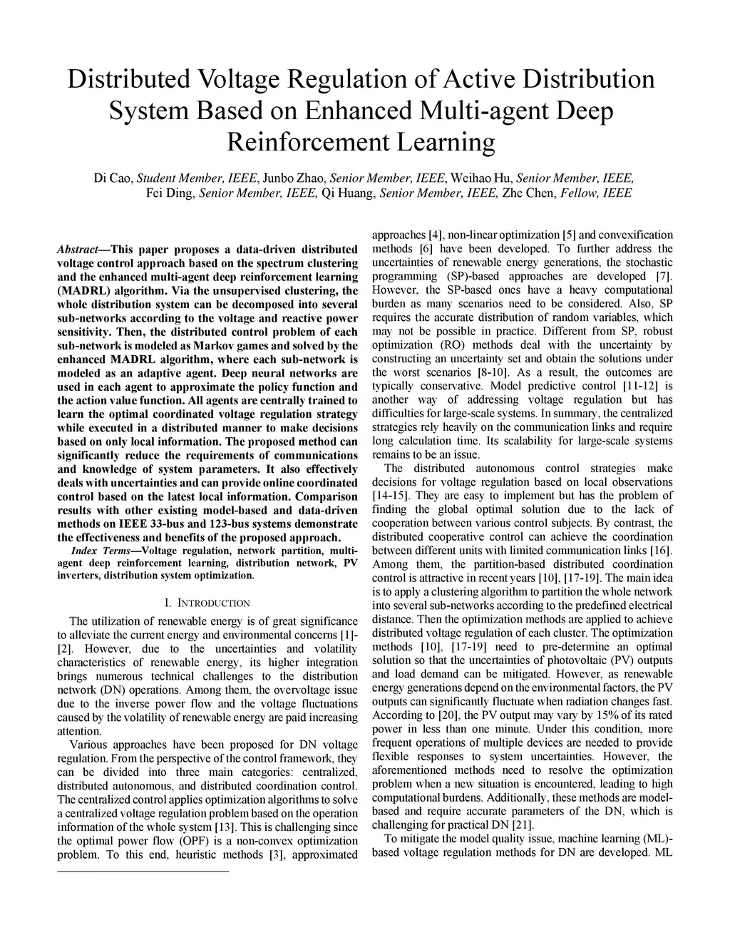Distributed Voltage Regulation of Active Distribution System Based on