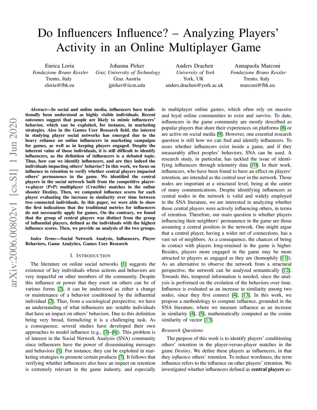 In social and online media, influencers have traditionally been understood as highly visible individuals. Recent outcomes suggest that people are likely to mimic influencers' behavior, which can be exploited, for instance, in marketing strategies. Also in the Games User Research field, the interest in studying player social networks has emerged due to the heavy reliance on online influencers in marketing campaigns for games, as well as in keeping players engaged. Despite the inherent value of those individuals, it is still difficult to identify influencers, as the definition of influencers is a debated topic. Thus, how can we identify influencers, and are they indeed the individuals impacting others' behavior? In this work, we focus on influence in retention to verify whether central players impacted others' permanence in the game. We identified the central players in the social network built from the competitive player-vs-player (PvP) multiplayer (Crucible) matches in the online shooter Destiny. Then, we computed influence scores for each player evaluating the increase in similarity over time between two connected individuals. In this paper, we were able to show the first indications that the traditional metrics for influencers do not necessarily apply for games. On the contrary, we found that the group of central players was distinct from the group of influential players, defined as the individuals with the highest influence scores. Then, we provide an analysis of the two groups.
