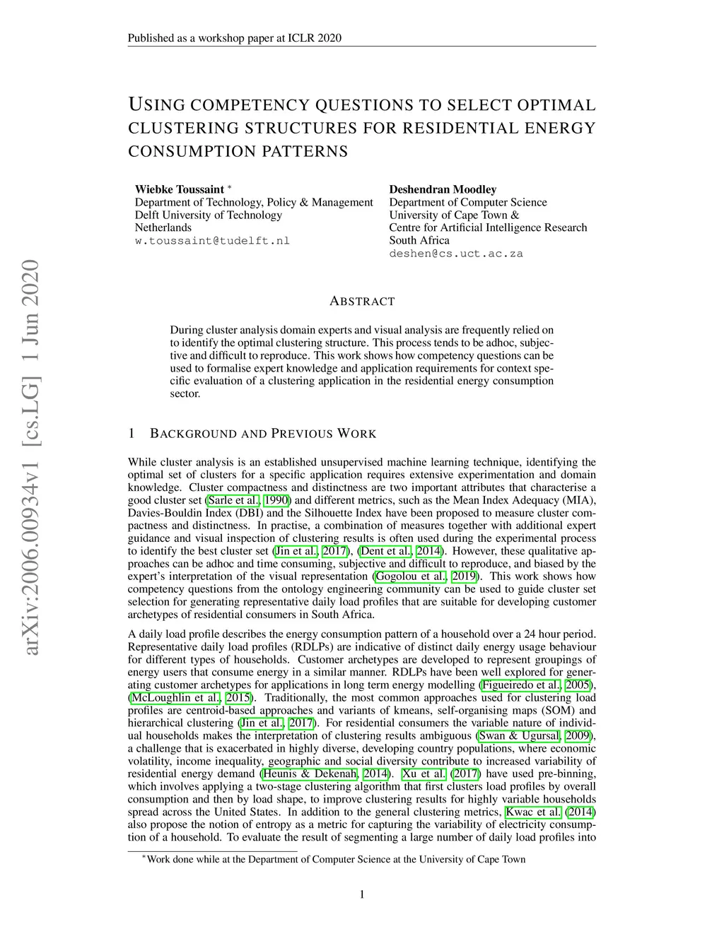 During cluster analysis domain experts and visual analysis are frequently relied on to identify the optimal clustering structure. This process tends to be adhoc, subjective and difficult to reproduce. This work shows how competency questions can be used to formalise expert knowledge and application requirements for context specific evaluation of a clustering application in the residential energy consumption sector.