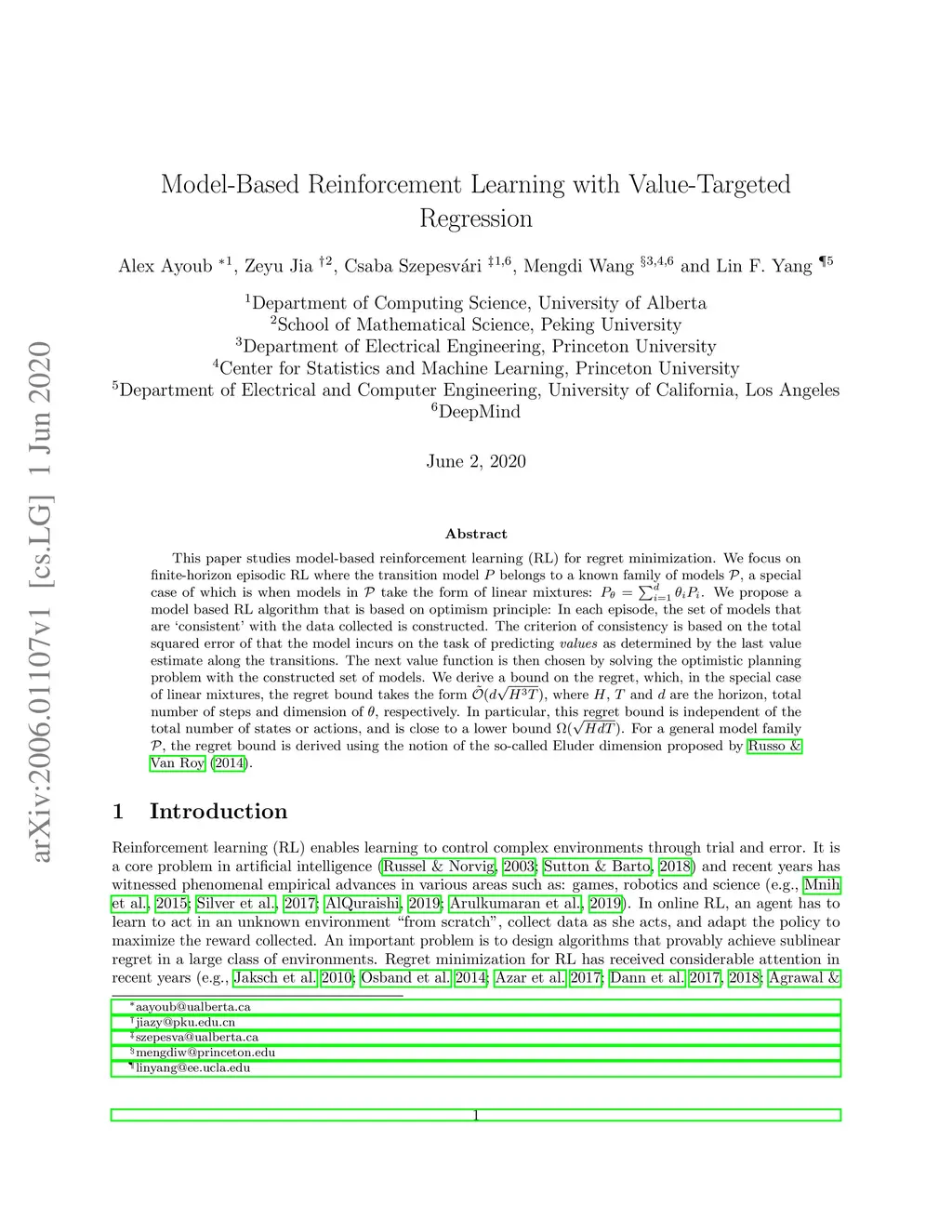 Model-Based Reinforcement Learning with Value-Targeted Regression